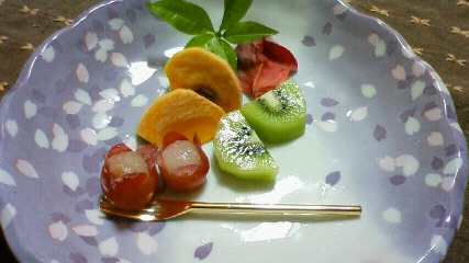 鮮やかなお色の落ち葉でフルーツが何故か元気にみえます。